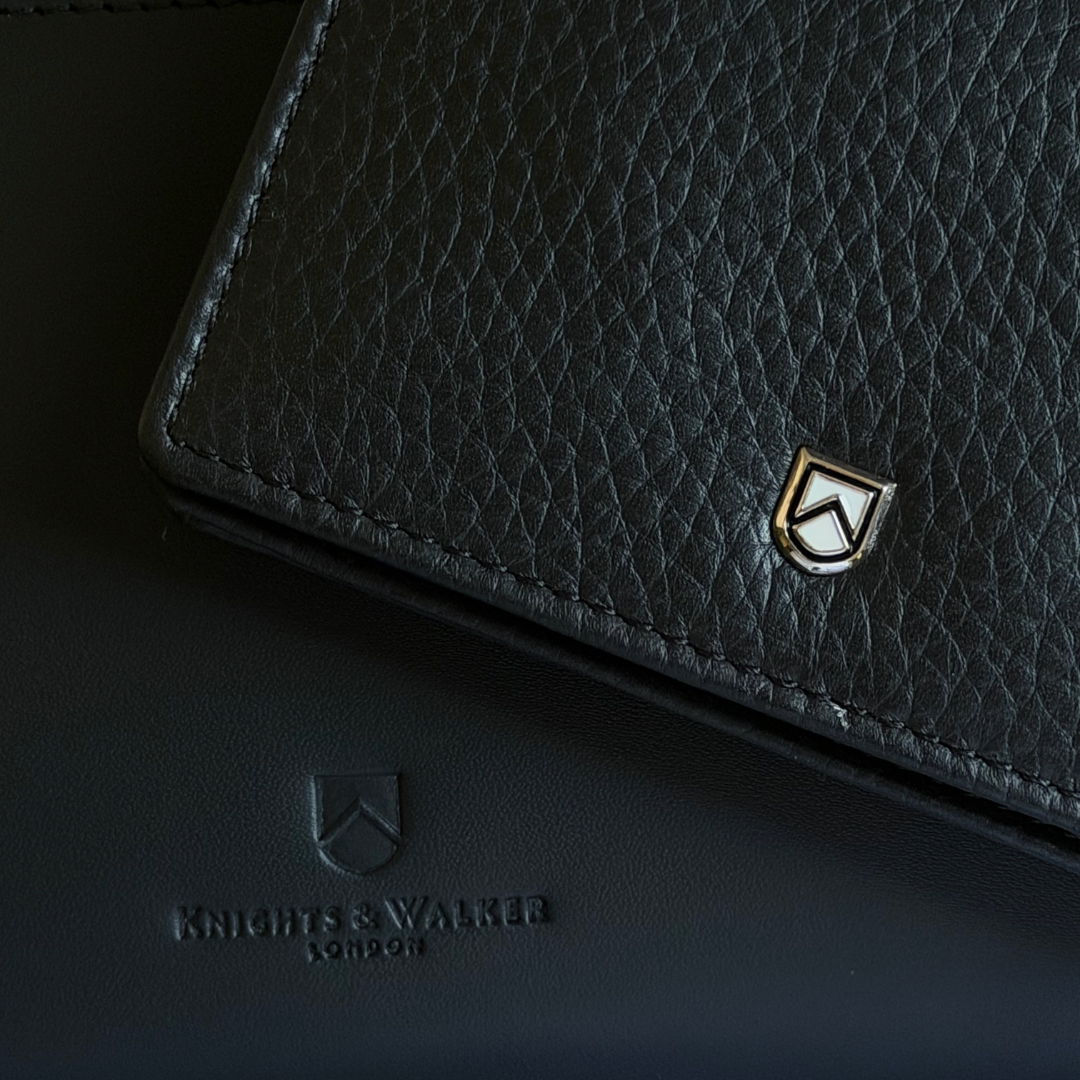 Knights & Walker uses YKK zippers across every product in the range — the grade specified by the world's leading luxury manufacturers. Zipper pulls are branded to the K&W hallmark.