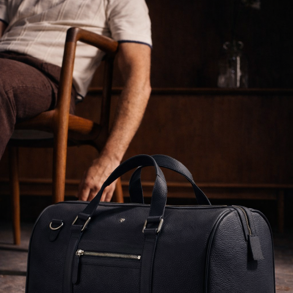 A handcrafted Knights & Walker leather duffle bag, cut from premium genuine leather hide, designed to elevate every journey from a quick weekend escape to a business trip. The supple yet structured silhouette, rich natural grain, and meticulously finished edges create a timeless travel companion that looks as good in an airport lounge as it does in the back of a chauffeured car. Spacious interiors, thoughtfully placed pockets, and solid metal hardware ensure your essentials are organised, protected, and always within easy reach.